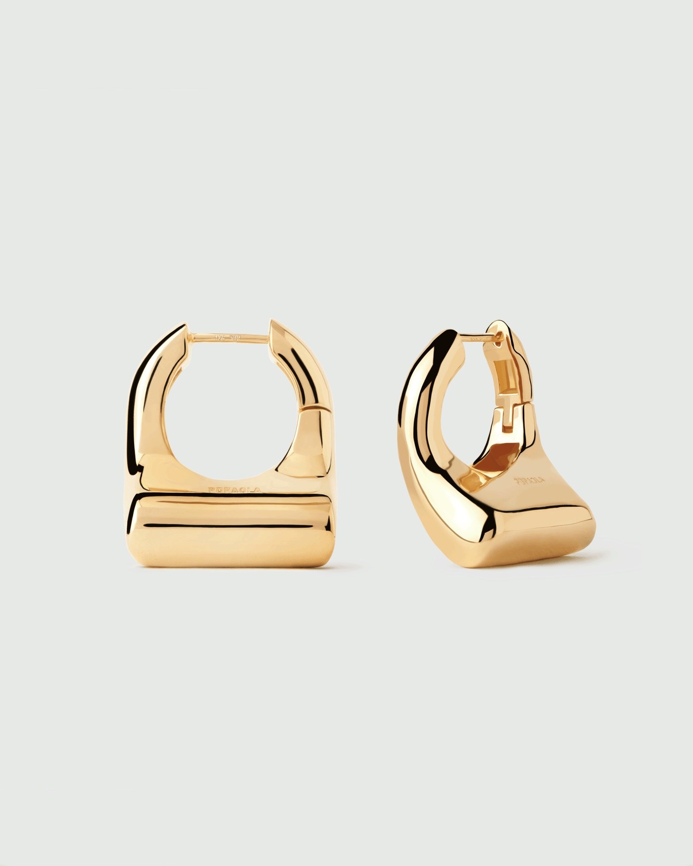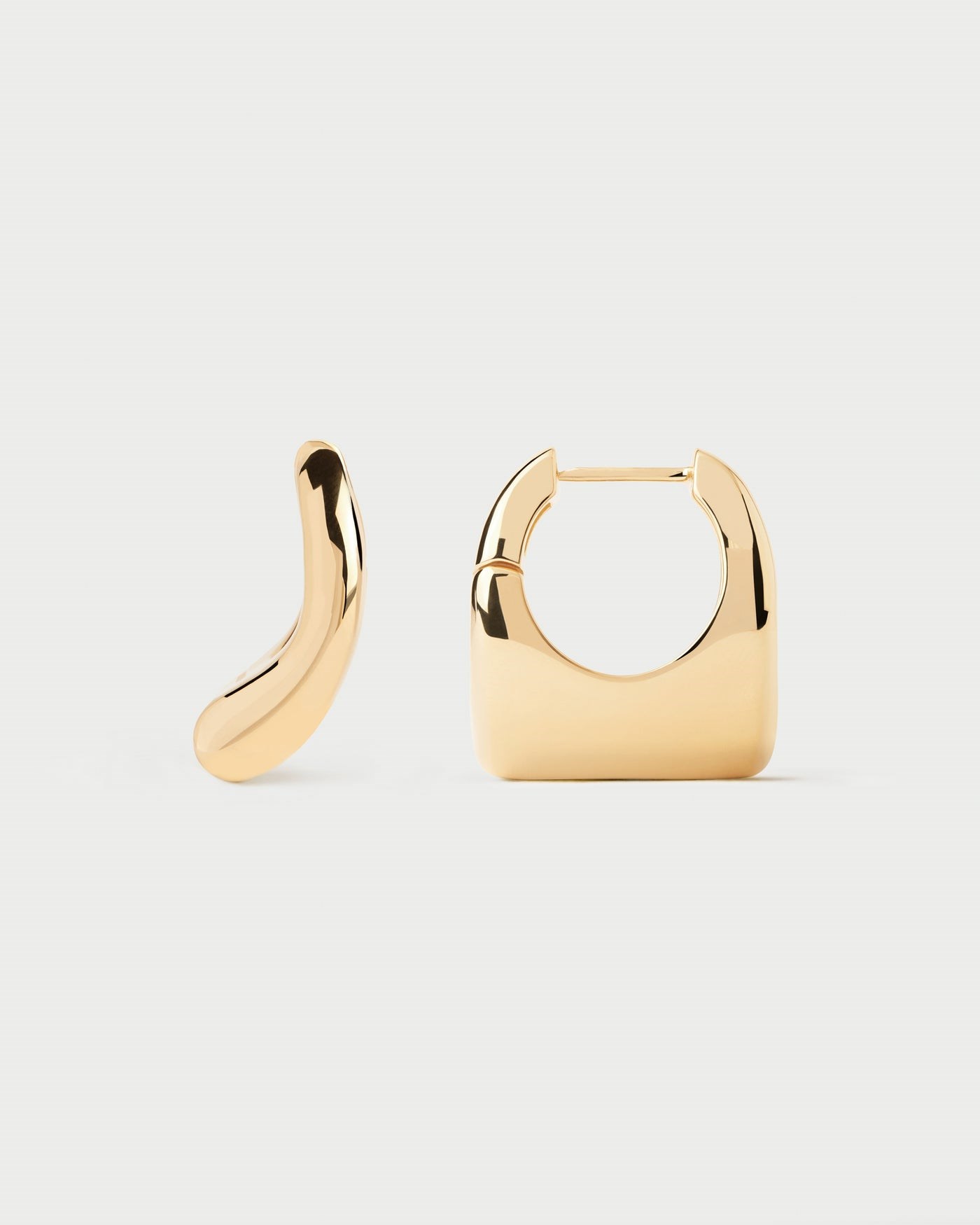 Orecchini donna pdpaola, AR01-C60-U, collezione ibiza, in argento placcato oro, a cerchio medio geometrici a forma di fagiolo ondulato.