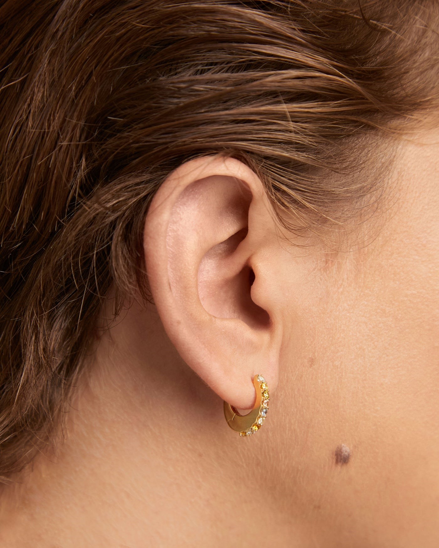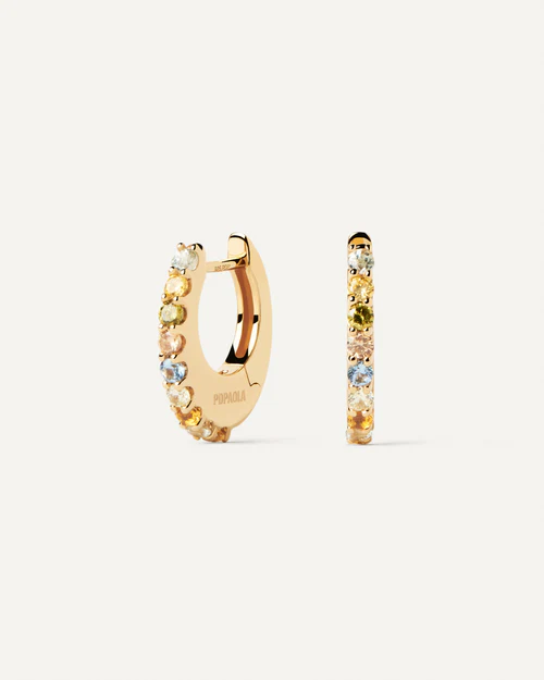 Orecchini donna pdpaola, AR01-B90-U, collezione vivi, in argento con placcatura in oro 18kt e zirconi colorati.