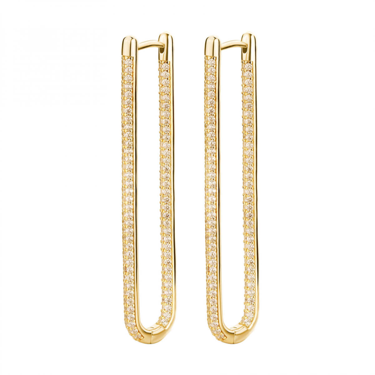 Orecchini donna rosato, RZBI76, collezione bianca, in argento 925‰, placcatura oro giallo con cubic zirconia bianchi. Misura: 50mm