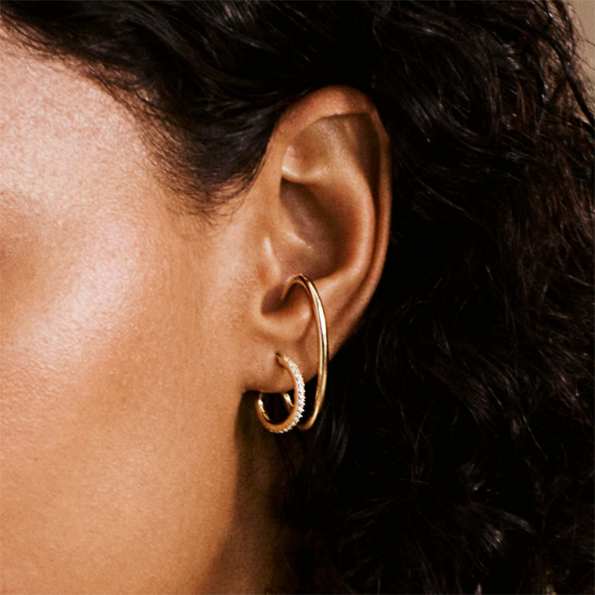 Orecchini donna rosato, RZBI77, collezione gema, in argento dorato con zirconi bianchi. Misura: 30mm