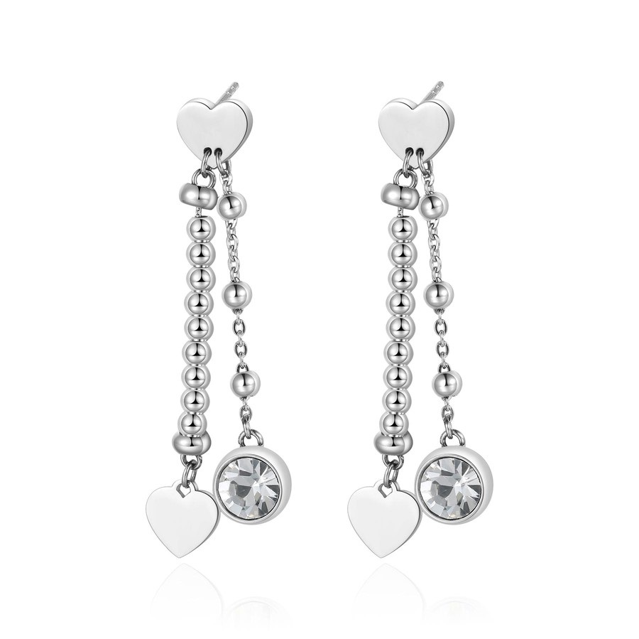 Orecchini donna s'agapò, Sar14, collezione aurora, in acciaio, pendente cuore e pendente cristallo, lunghezza 4, 5cm