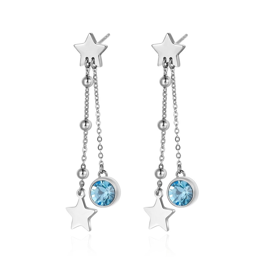 Orecchini donna s'agapò, Sar19, collezione aurora, in acciaio, pendente stella e cristallo, lunghezza 5cm
