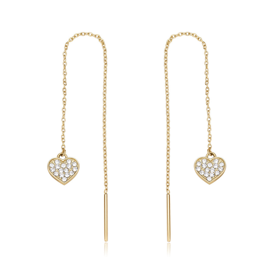 Orecchini donna s'agapo, SAR53, collezione aurora, in acciaio finitura oro 14 con cuori e cristalli, misura 10mm