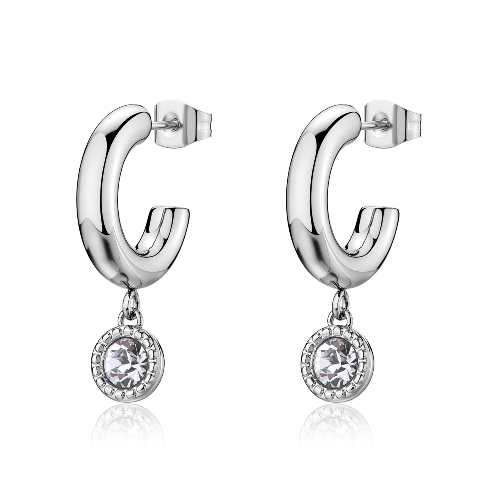Orecchini donna sagapò, SAR68, collezione aurora, a cerchietto in acciaio 316L con cristalli pendenti. Misura orecchini:26mm