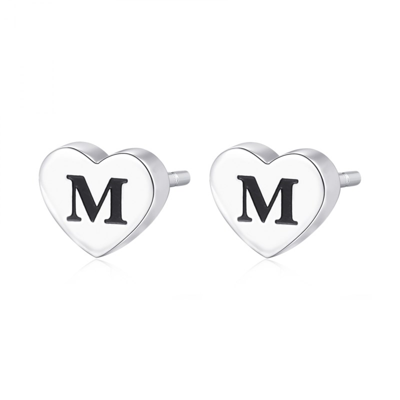 Orecchini donna s'agapò, Sck106, collezione click, in acciaio con m smaltata nera, dimensioni 8_8mm