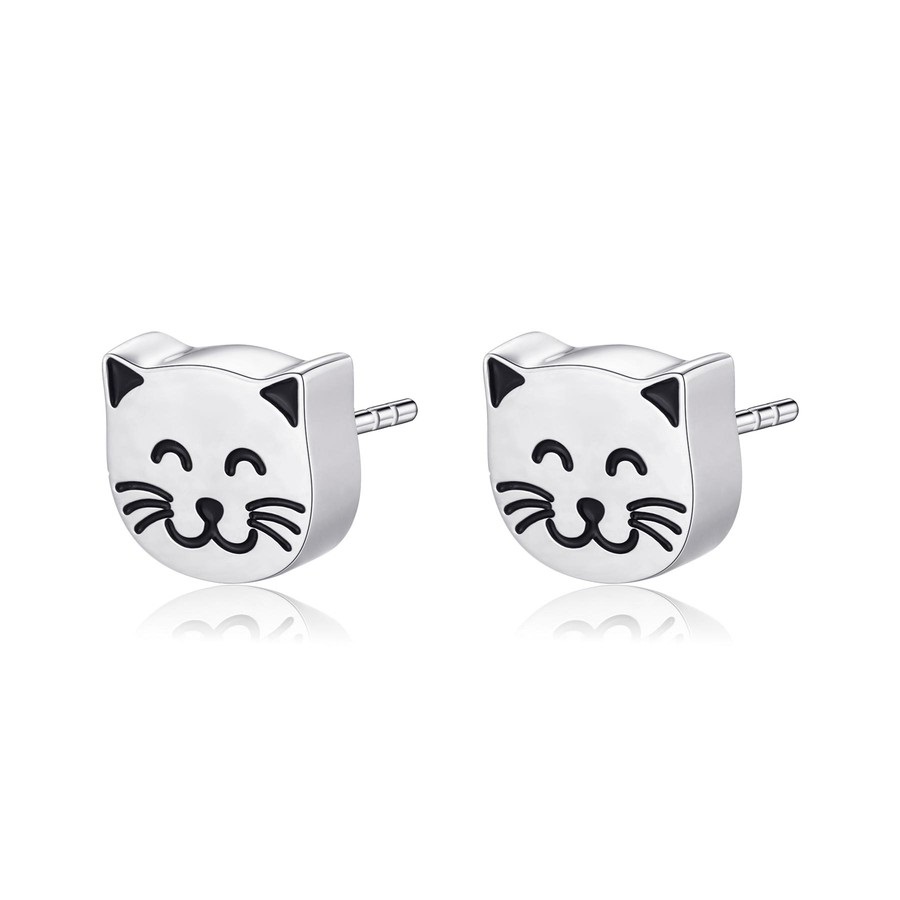 Orecchini donna sagapò, Sck154, collezione click, in acciaio a forma di gatto, misura 7mm