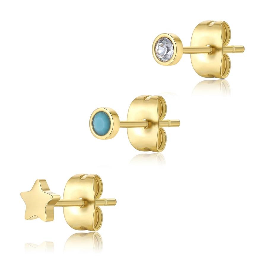 Tris orecchini donna s'agapò, Sck167, collezione click, in acciaio dorato a forma di stella e cristalli