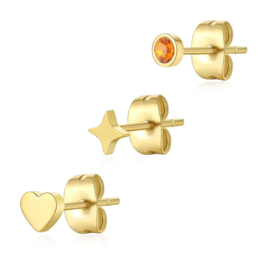 Tris orecchini donna s'agapò, sck168, collezione click, in acciaio dorato a forma di cuore, stella polare e cristalli