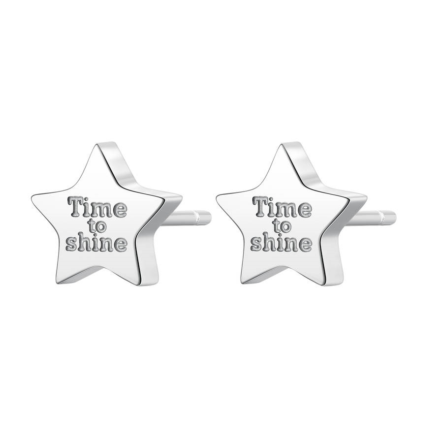 Orecchini donna s'agapò, Sck36, collezione click, in acciaio a forma di stella e scritta:'time to shine'