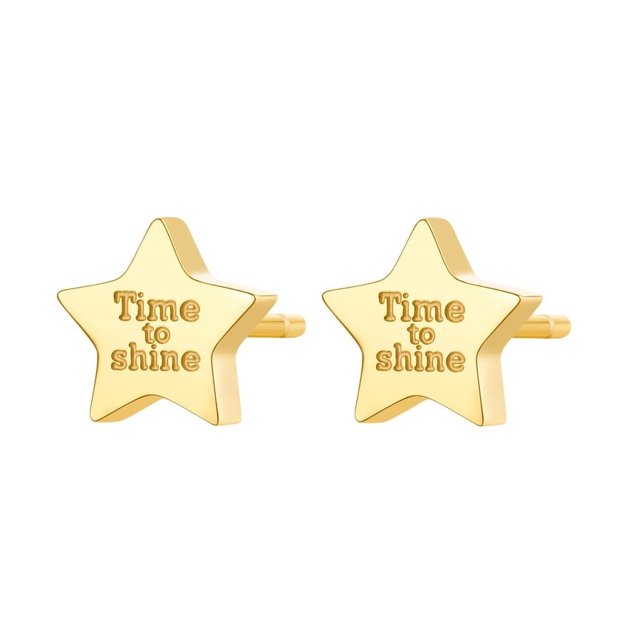 Orecchini donna s'agapò, Sck37, collezione click, in acciaio dorato con scritta:'time to shine'