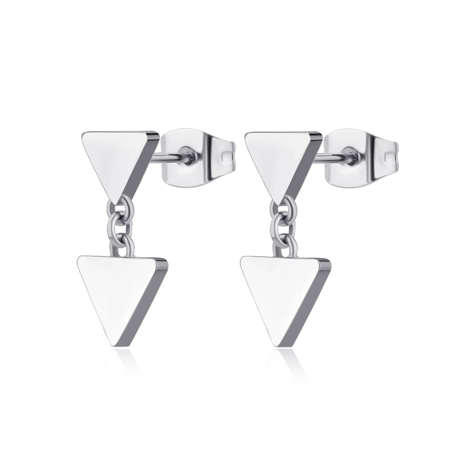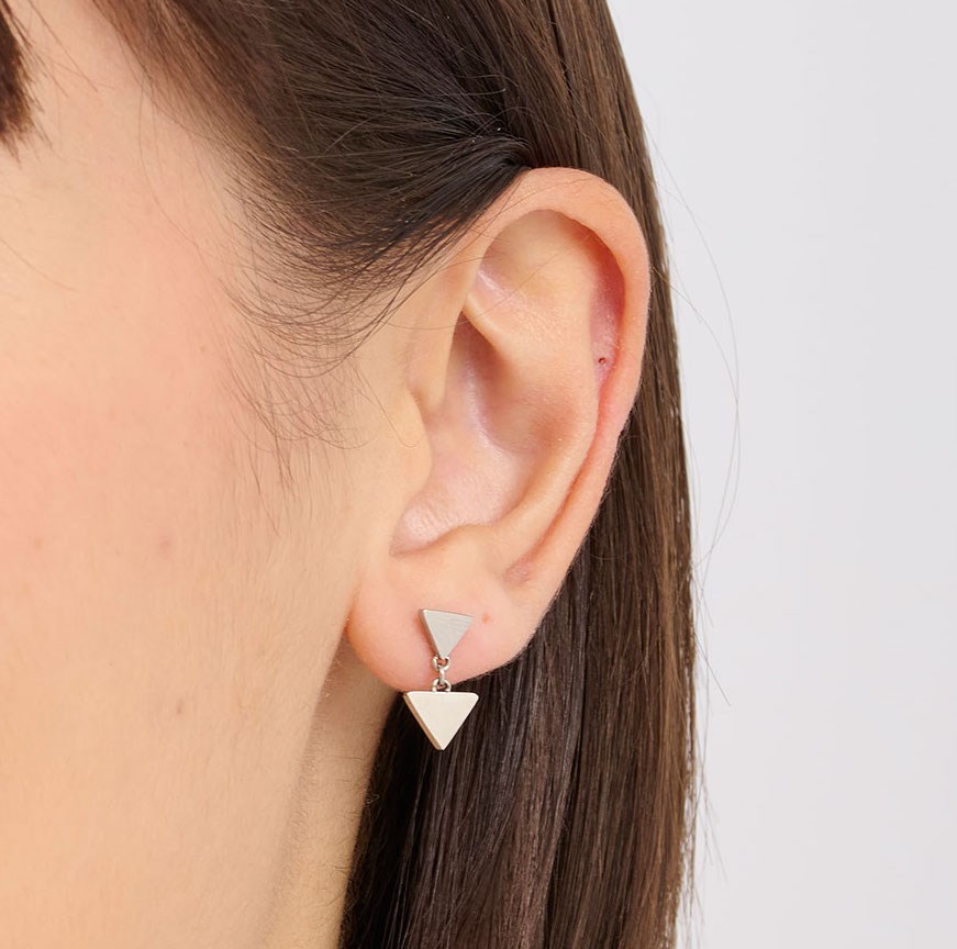Orecchini donna sagapò, SUM23, collezione elysium, in acciaio 316L con pendenti a forma di triangolo. dimensione 15mm