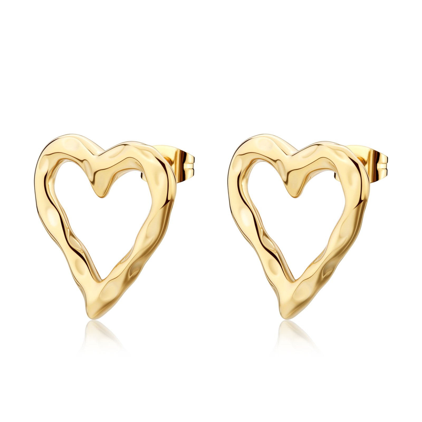 Orecchini donna sagapò, SMO24, collezione emotion, a lobo a forma di cuore in acciaio 316L e finitura pvd oro 14K. Misura orecchini:20mm