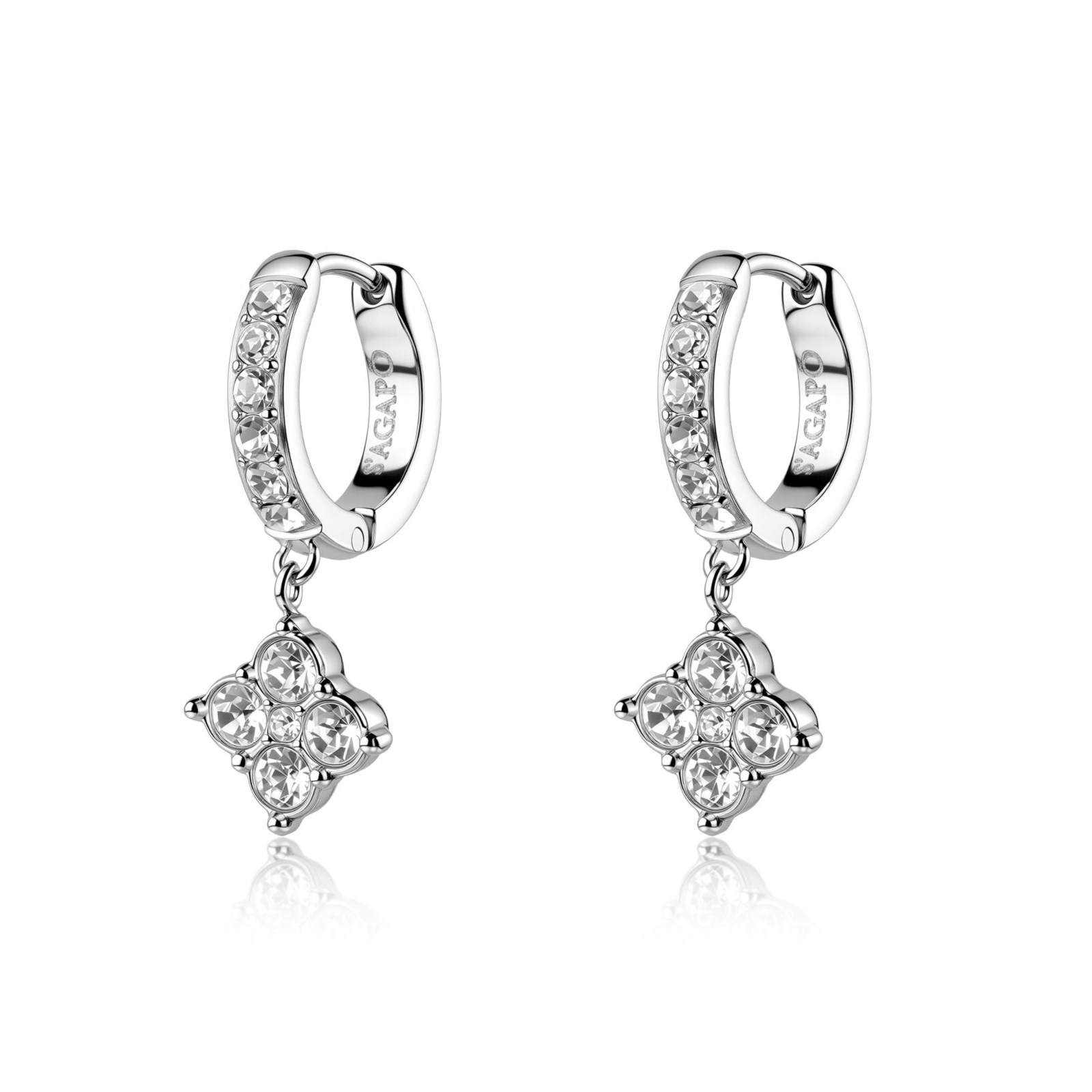 Orecchini donna s'agapo, SLA24, collezione gleam, in acciaio 316L con cristalli pendenti, . misura 19, 8mm