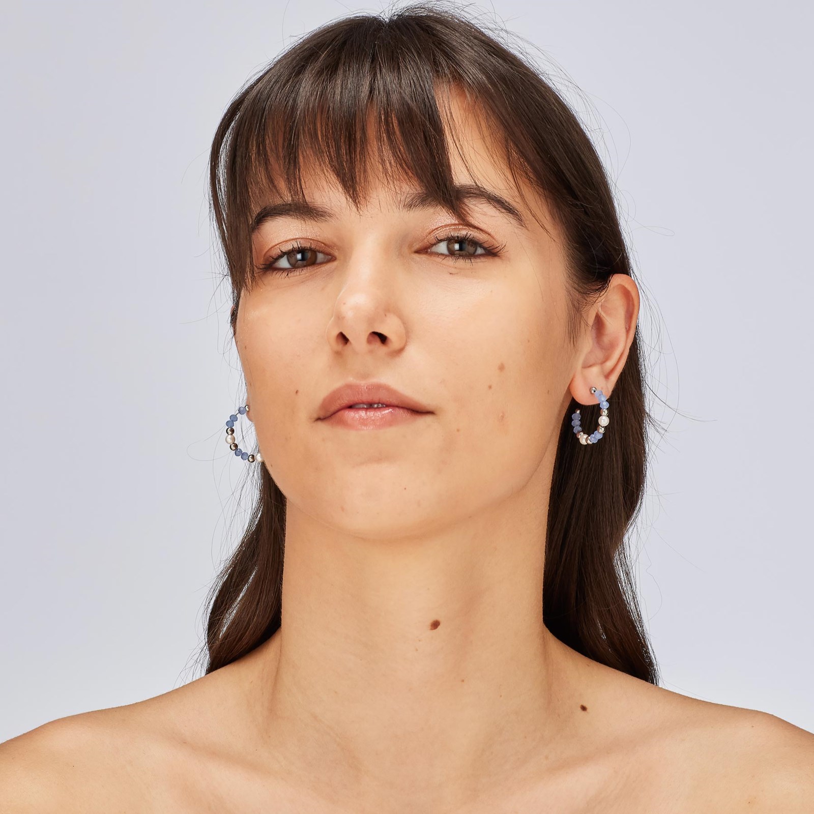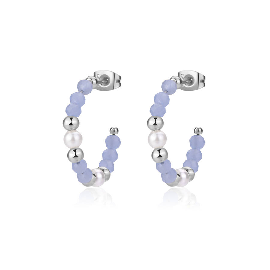 Orecchini donna s'agapo, SGI23, collezione glint, in acciaio 316L con sfere in vetro blu, acciaio 316L e perle