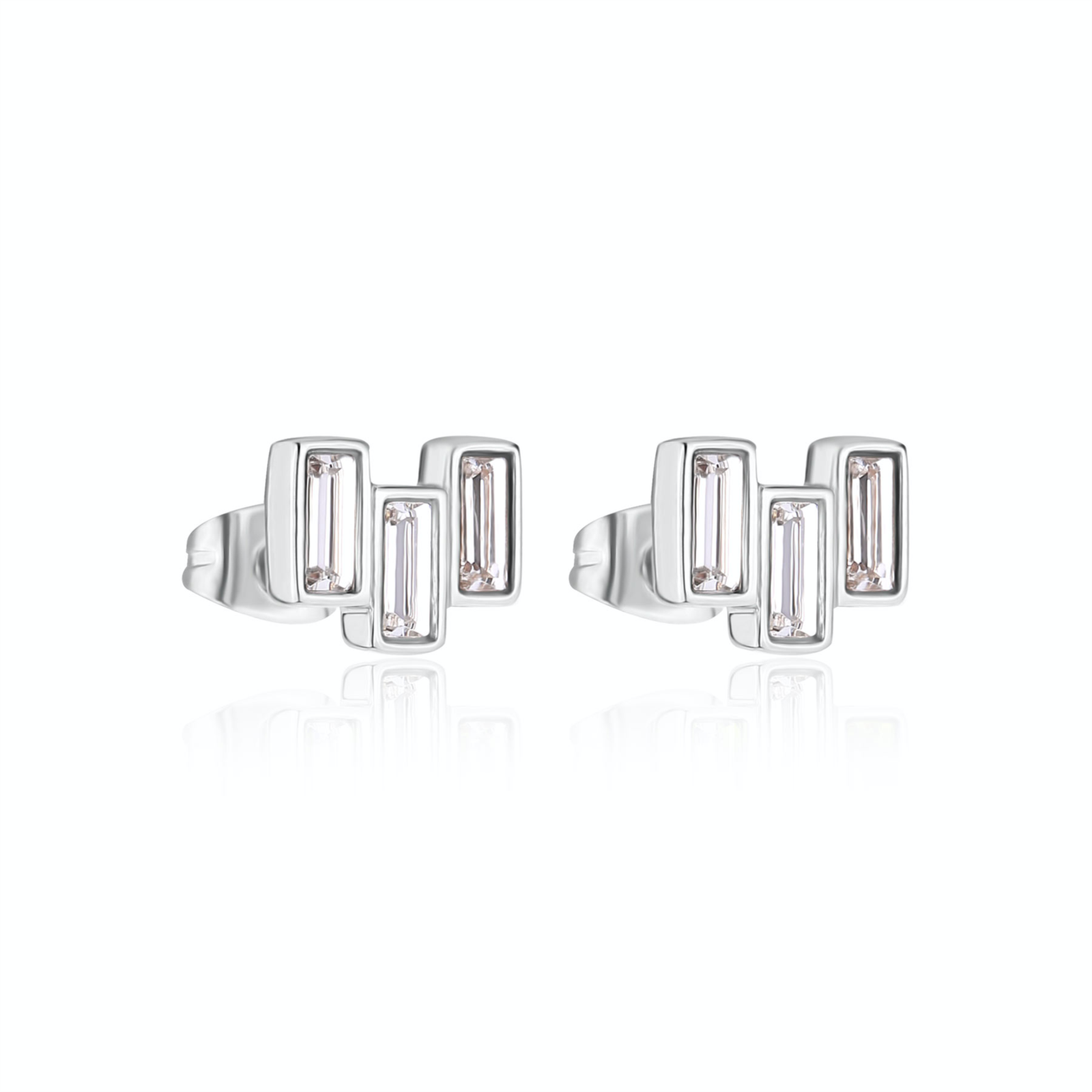 Orecchini donna sagapò, SCE31, collezione luce, in acciaio a lobo con cristalli rettangolari. Misura orecchini:10mm