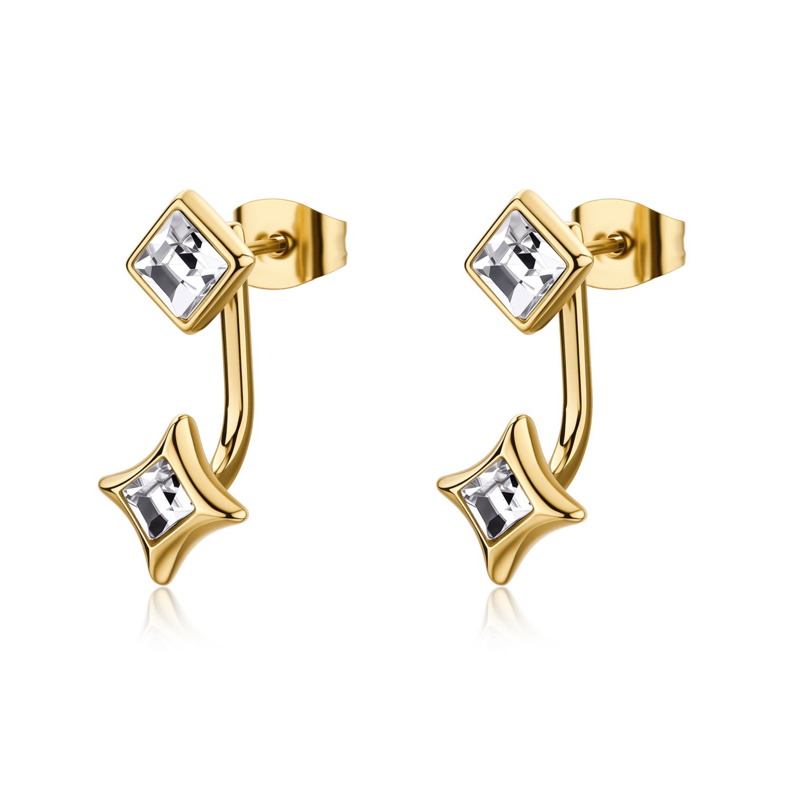 Orecchini donna sagapò, SCE60, collezione luce, in acciaio 316L e finitura dorata con cristalli.
