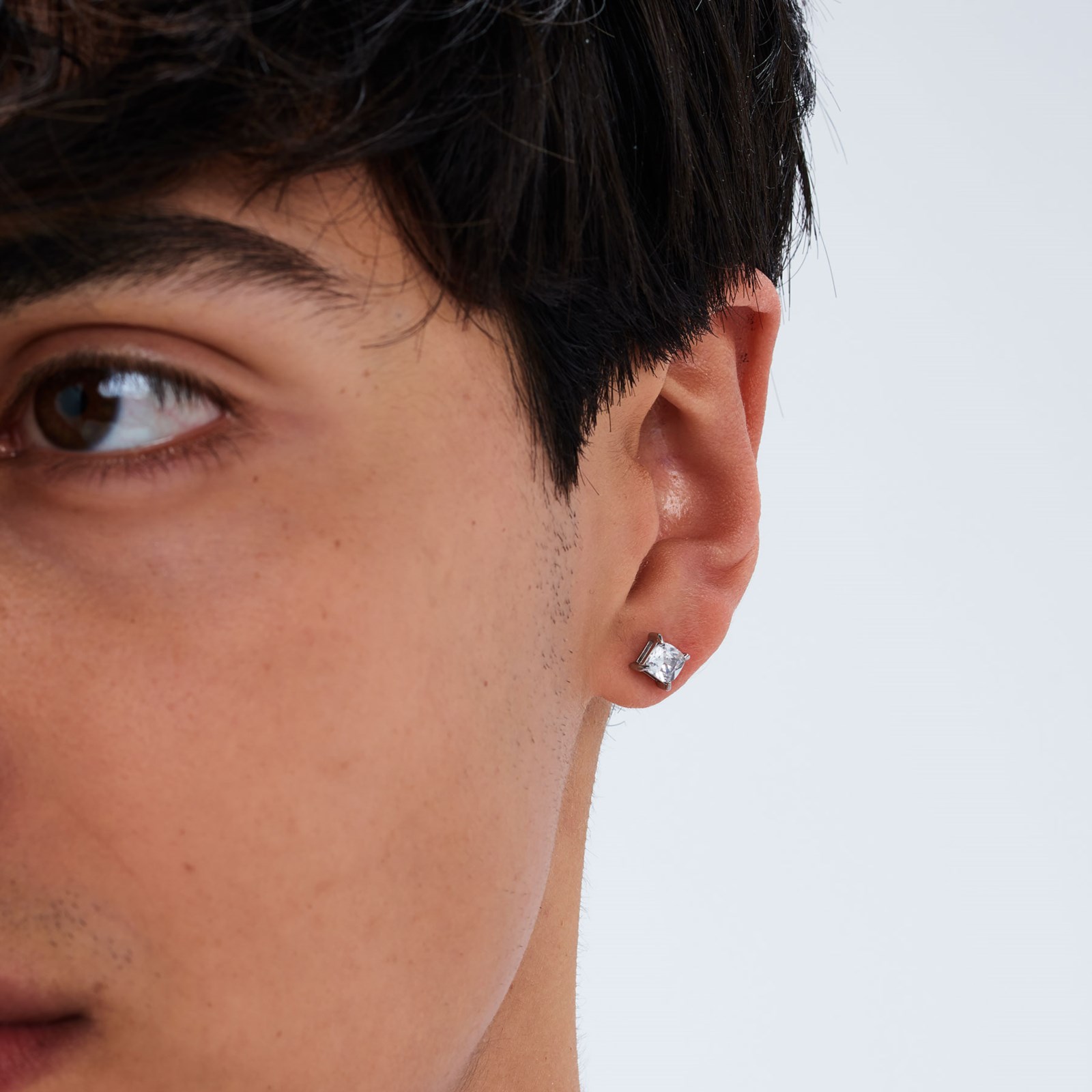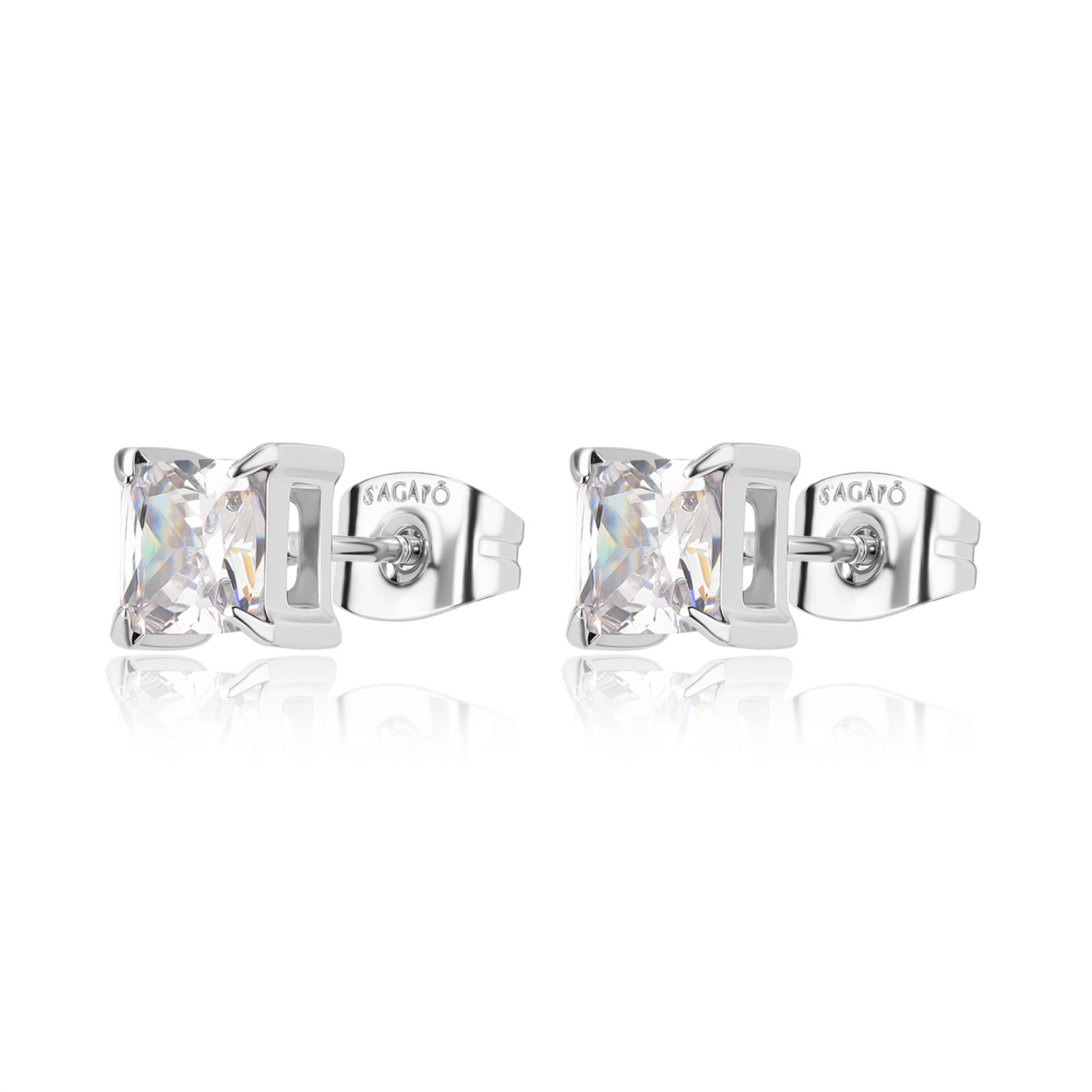 Orecchini uomo sagapò, STK14, collezione tricky, a lobo in acciaio 316L con cubic zirconia. dimensione 6mm