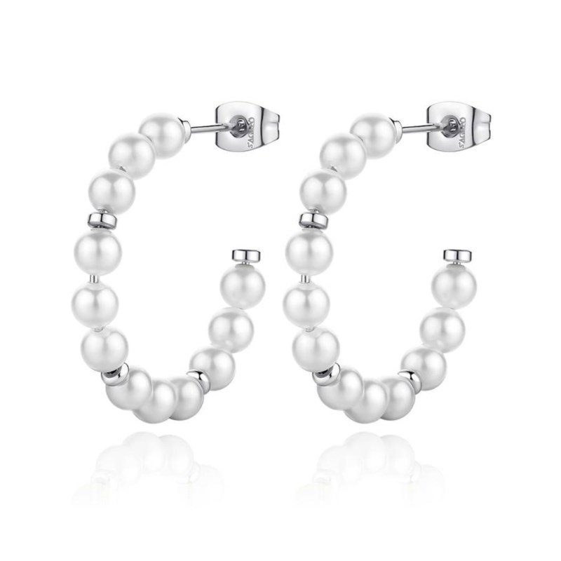 Orecchini donna s'agapo, SWI25, collezione wisdom, in acciaio con perle, misura 27mm