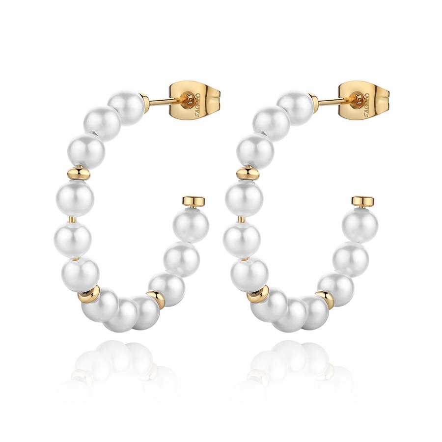 Orecchini donna s'agapo, SWI26, collezione wisdom, in acciaio dorato con perle, misura 27mm