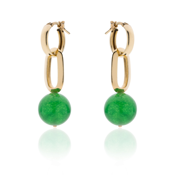 Orecchini donna unoaerre, 2479, collezione cherry, in bronzo dorato con perle verdi