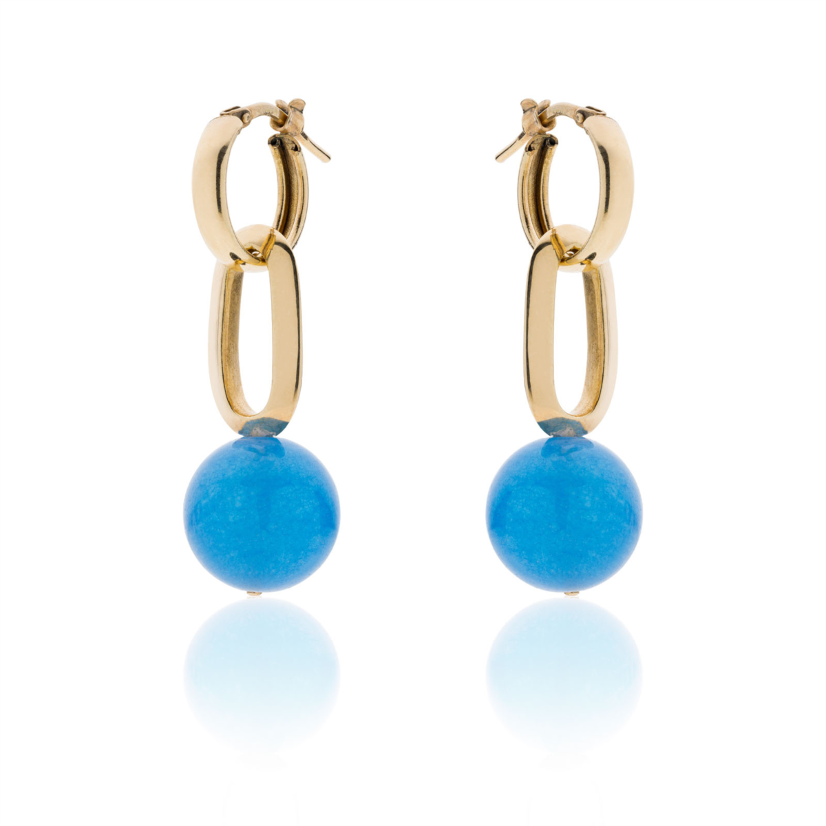 Orecchini donna unoaerre, 2482, collezione cherry, in bronzo dorato con perla blu