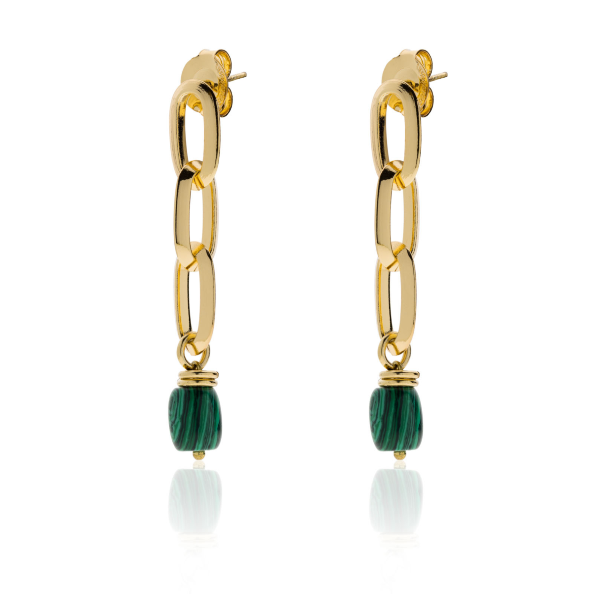 Orecchini donna unoaerre, 2200, collezione classica, in bronzo dorato e malachite verde naturale
