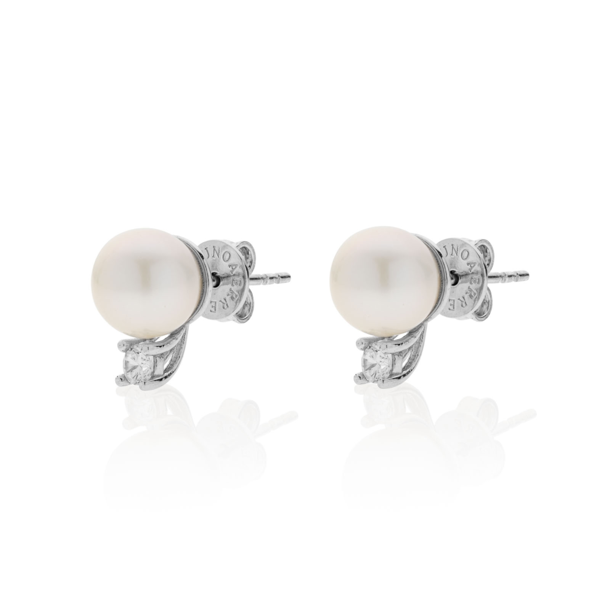 Orecchini donna unoaerre, 6442, collezione luxury, in argento con perla bianca e zirconi