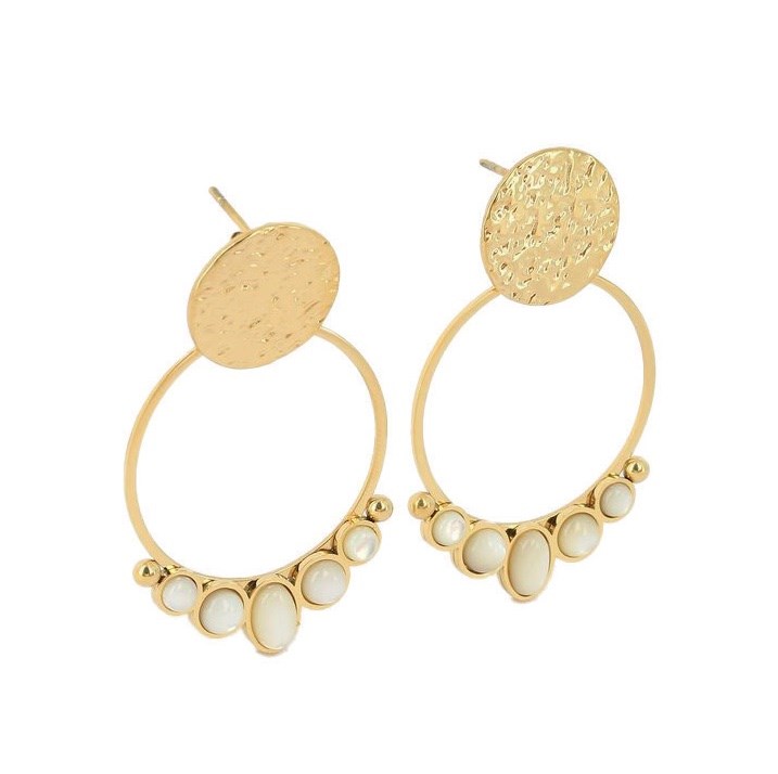 Orecchini donna zag bijoux, SEL18350-01SEL, collezione wida, in acciaio dorato, a cerchio con 5 pietre bianche.