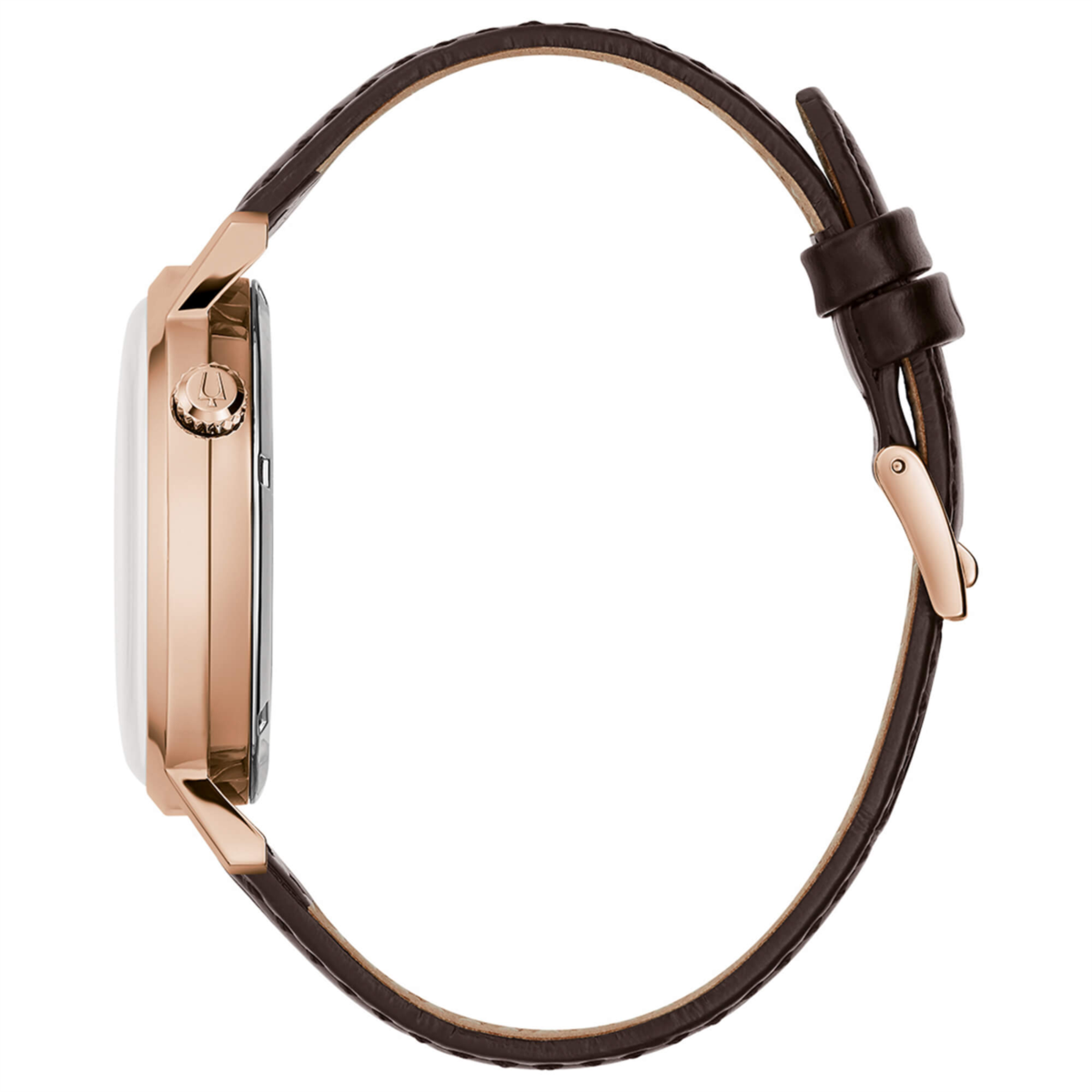 Orologio uomo bulova, 97a171, collezione aerojet, movimento automatico, solo tempo, cassa in acciaio rosa 41mm, quadrante con movimento a vista, cinturino in pelle marrone, resistenza all'acqua 3atm