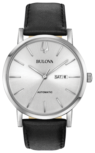 Orologio bulova da uomo, 96C130, collezione clipper, movimento automatico/meccanico con riserva 40 ore, solo tempo, materiale cassa acciaio da 42 mm spessa 11.5m , quadrante silver, cinturino in pelle nera, e la chiusura deployante, impermeabilità 30 atm