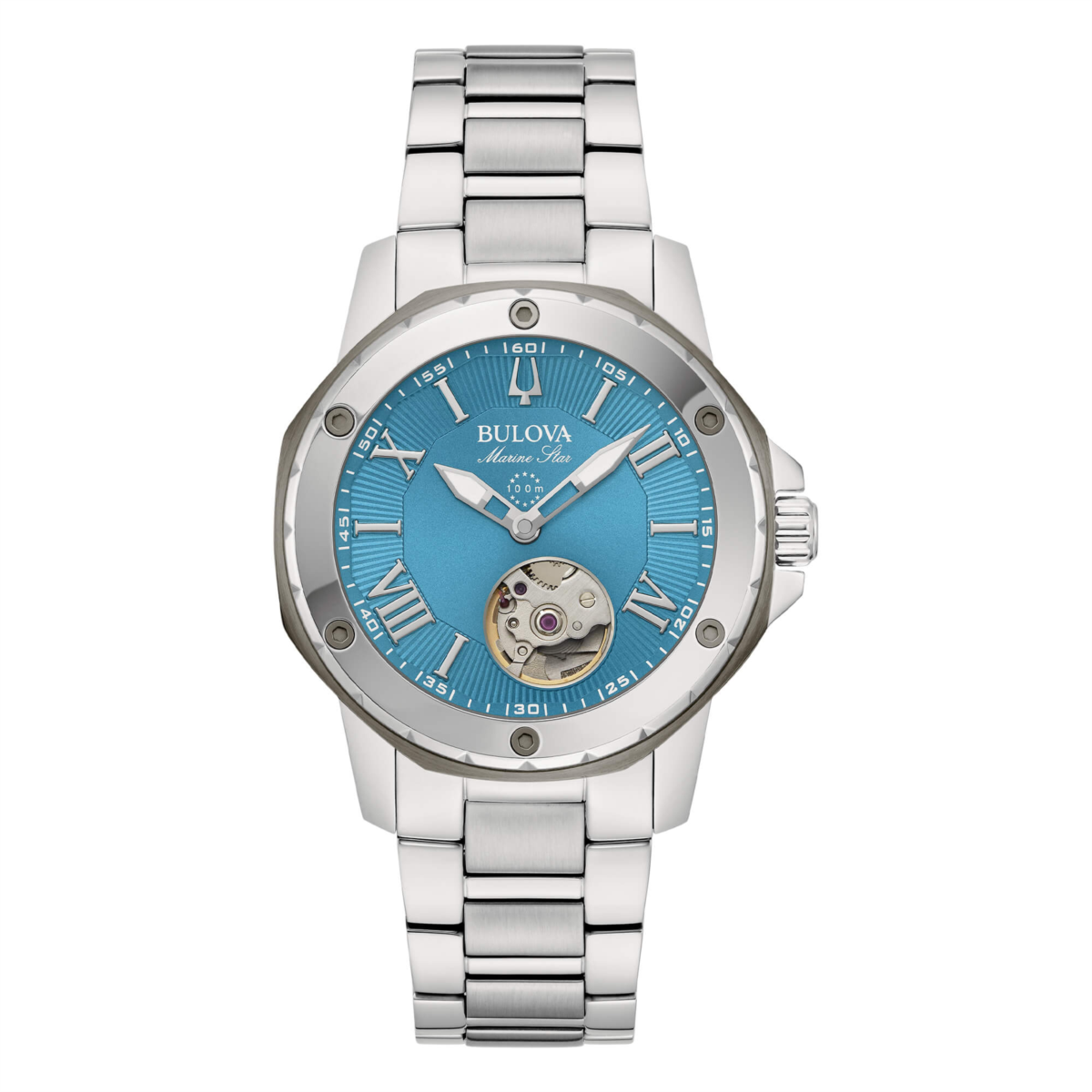 Orologio donna bulova, 98L317, collezione marine lady star, movimento al automatico, solo tempo, cassa in acciaio 35mm, quadrante blu, vetro zaffiro.