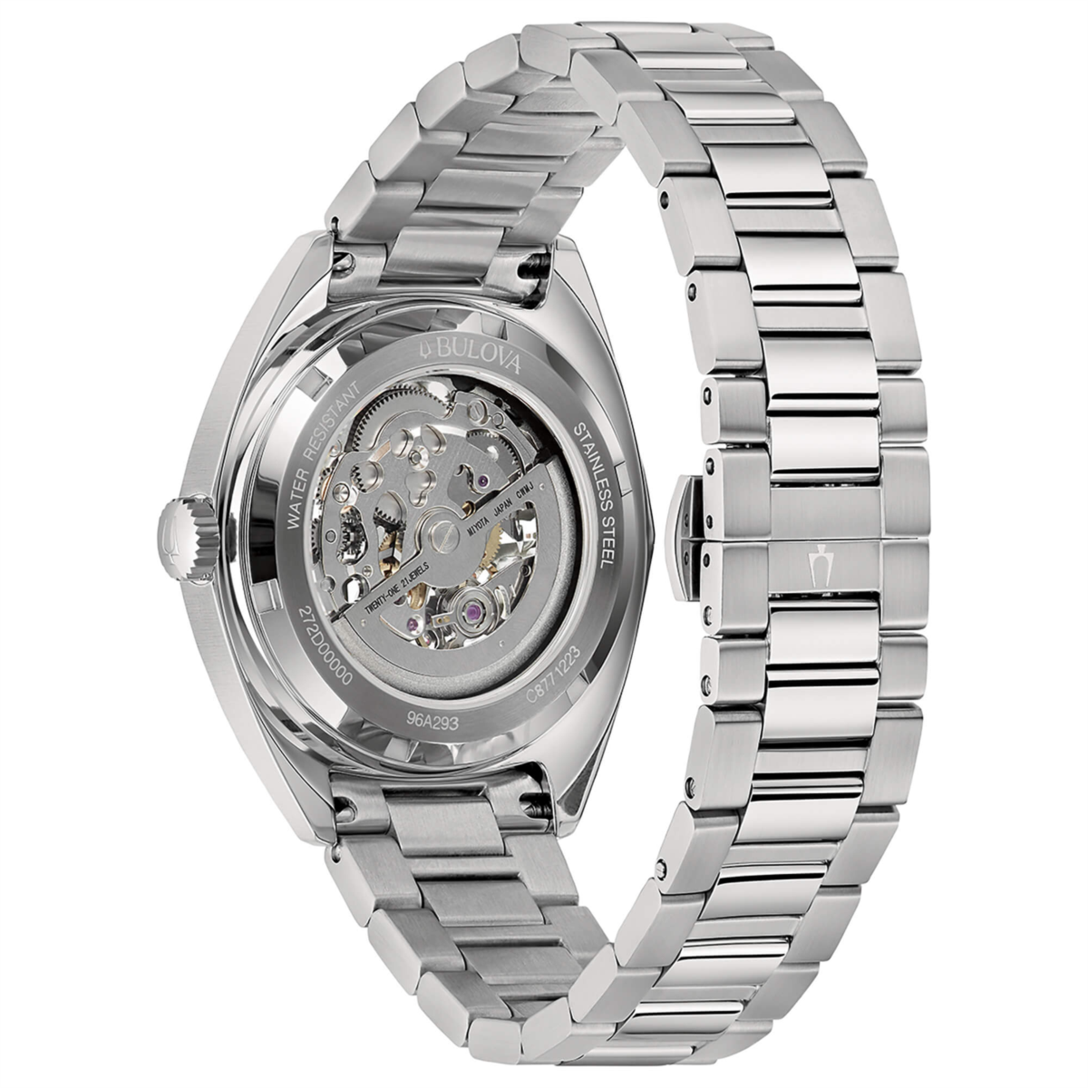 Orologio uomo bulova, 96A293, collezione Surveyor, movimento automatico, solo tempo, cassa in acciaio 41mm, quadrante con movimento a vista, 21 rubini, fondello a vite con oblo trasparente, bracciale in acciaio, resistenza all'acqua 3atm