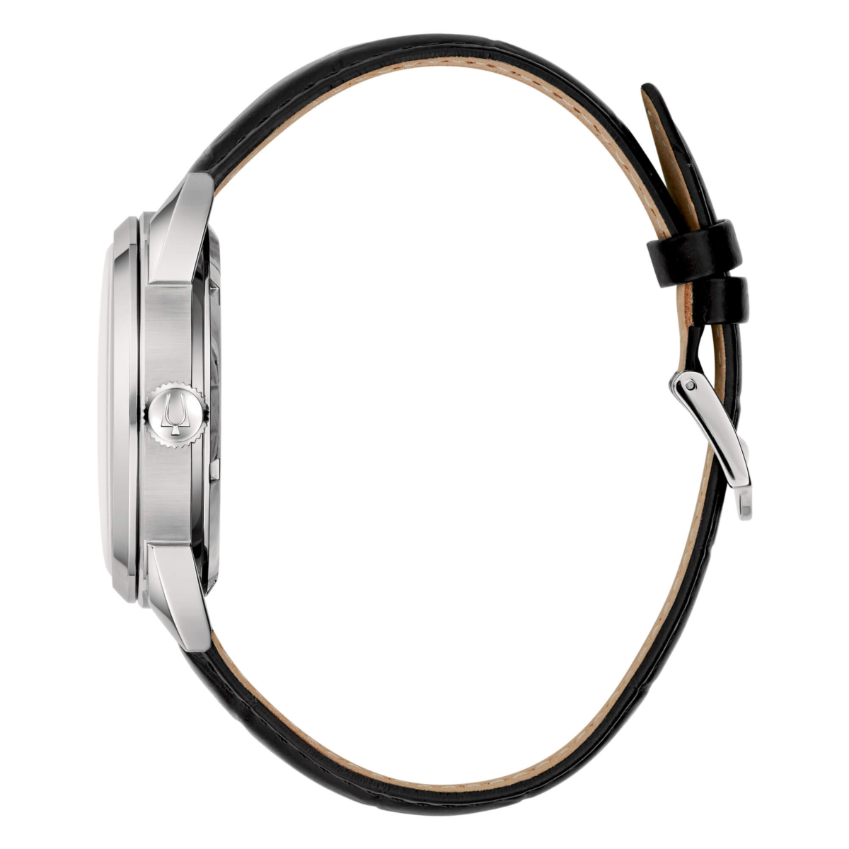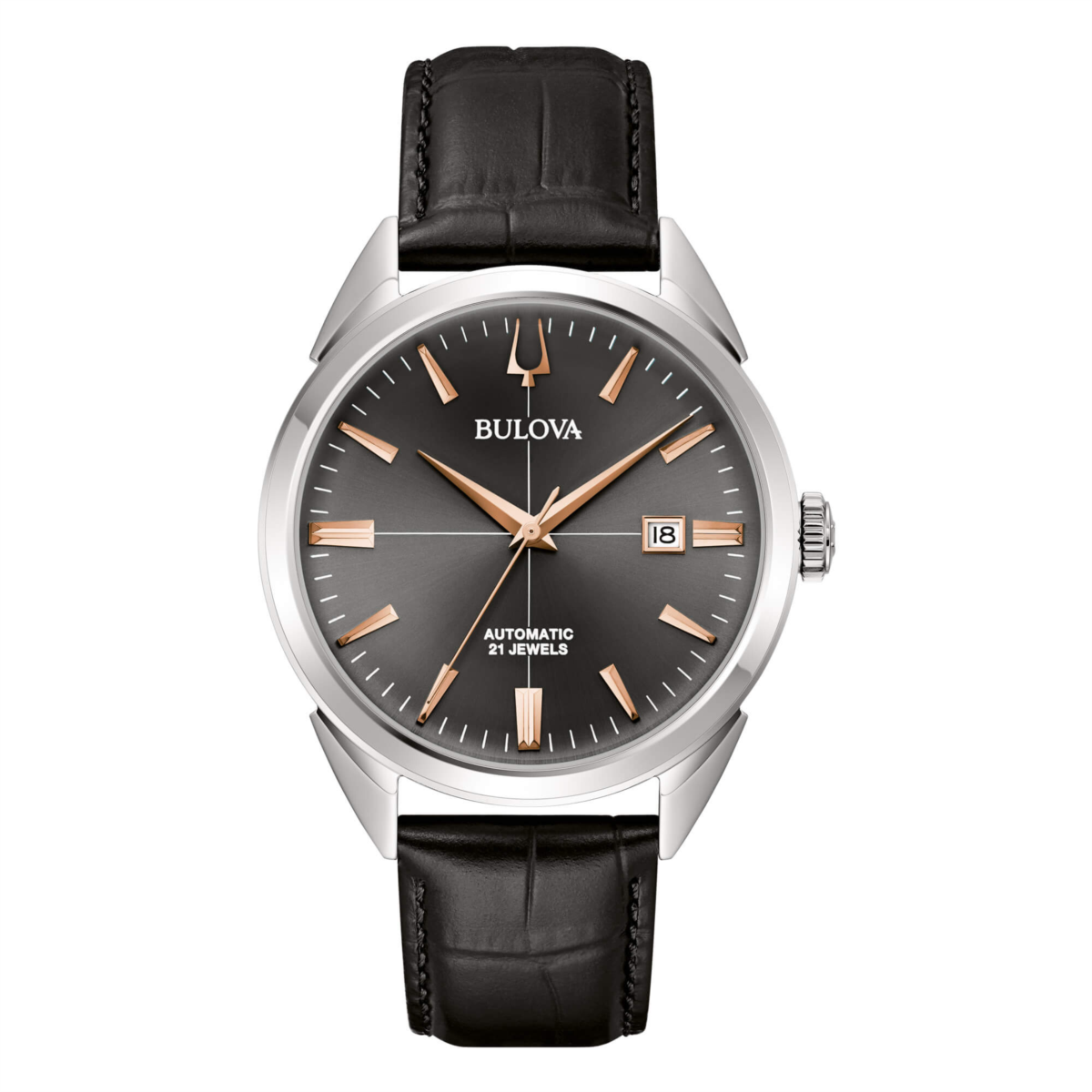 Orologio uomo bulova, 96B422, collezione sutton, movimento automatico, solo tempo, cassa in acciaio 41mm, quadrante antracite con datario, cinturino in pelle, resistenza all'acqua 3atm