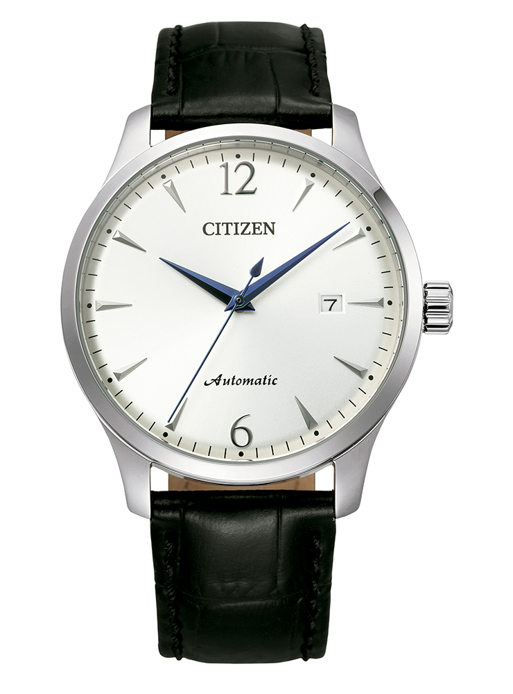 Orologio uomo citizen, Nj0110-18a, collezione classic, movimento automatico, solo tempo, cassa in acciaio 40mm, quadrante bianco con datario, cinturino in pelle nera, resistenza all'acqua 5atm