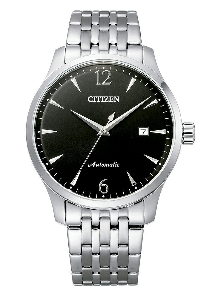 Orologio uomo citizen, NJ0118-16A, collezione classic, movimento automatico, solo tempo, cassa in acciaio 40mm, quadrante nero con datario, bracciale in acciaio, resistenza all'acqua 5atm