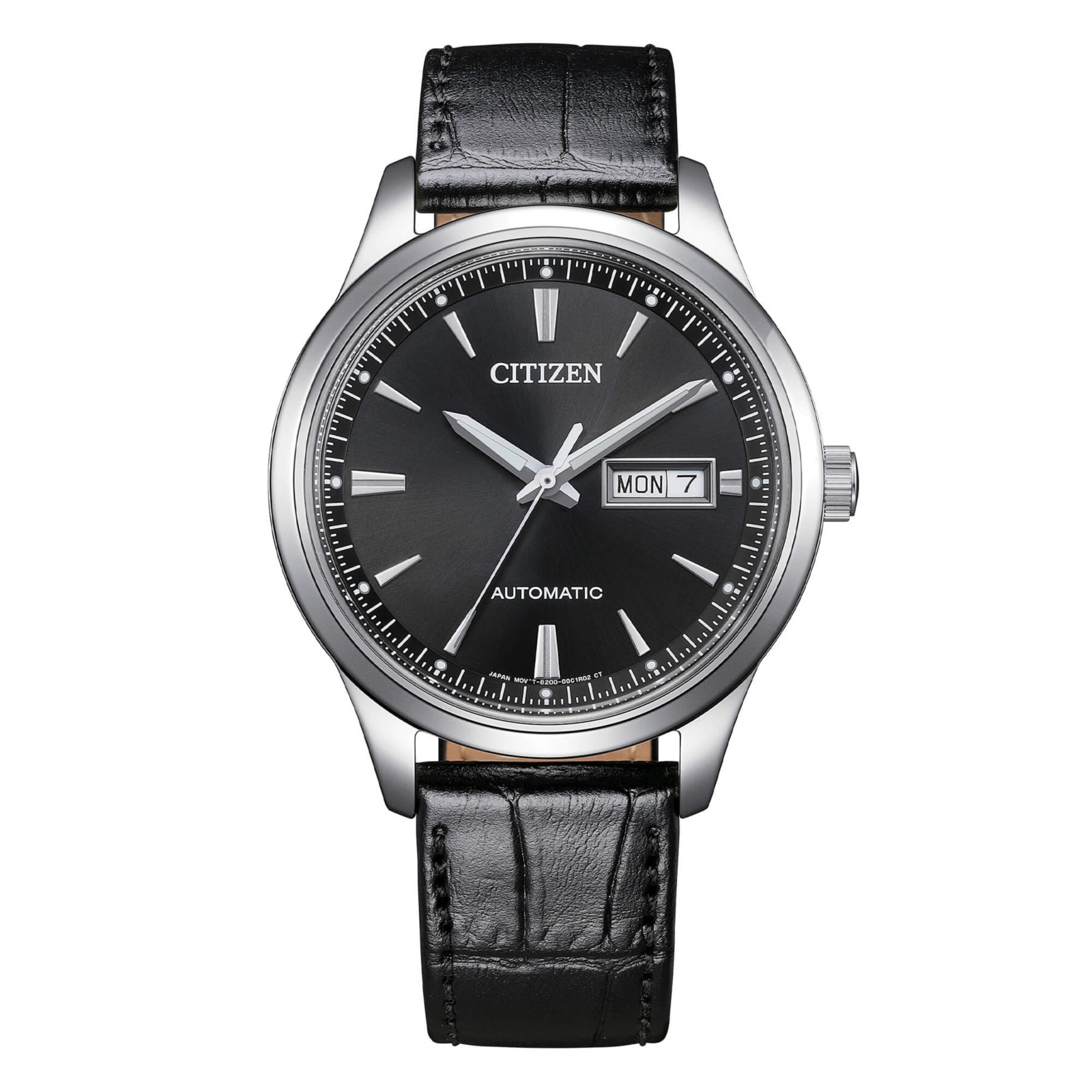 Orologio uomo citizen, NY4058-01E, collezione classic, movimento automatico, solo tempo, cassa in acciaio 40mm, quadrante nero con datario, cinturino in pelle, resistenza all'acqua 5atm