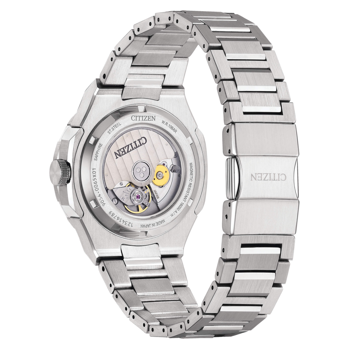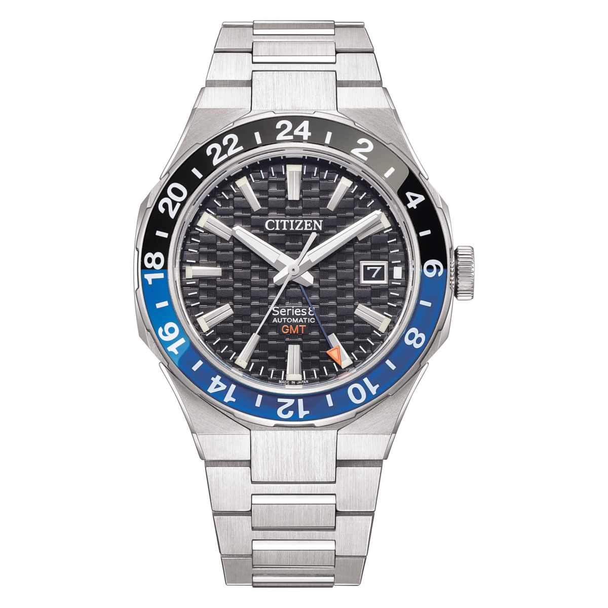 Orologio uomo citizen, NB6031-56E, collezione serie 8, movimento automatico, gmt, cassa in acciaio 41mm, quadrante nero con datario, bracciale in acciaio, resistenza all'acqua 10atm
