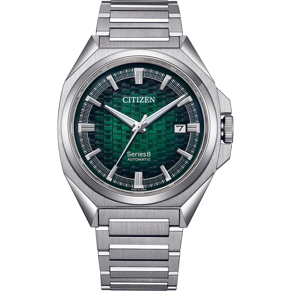 Orologio uomo citizen, NB6050-51W, collezione serie 8, movimento automatico, solo tempo, cassa in acciaio 40mm, quadrante verde con datario, bracciale in acciaio, resistenza all'acqua 20atm