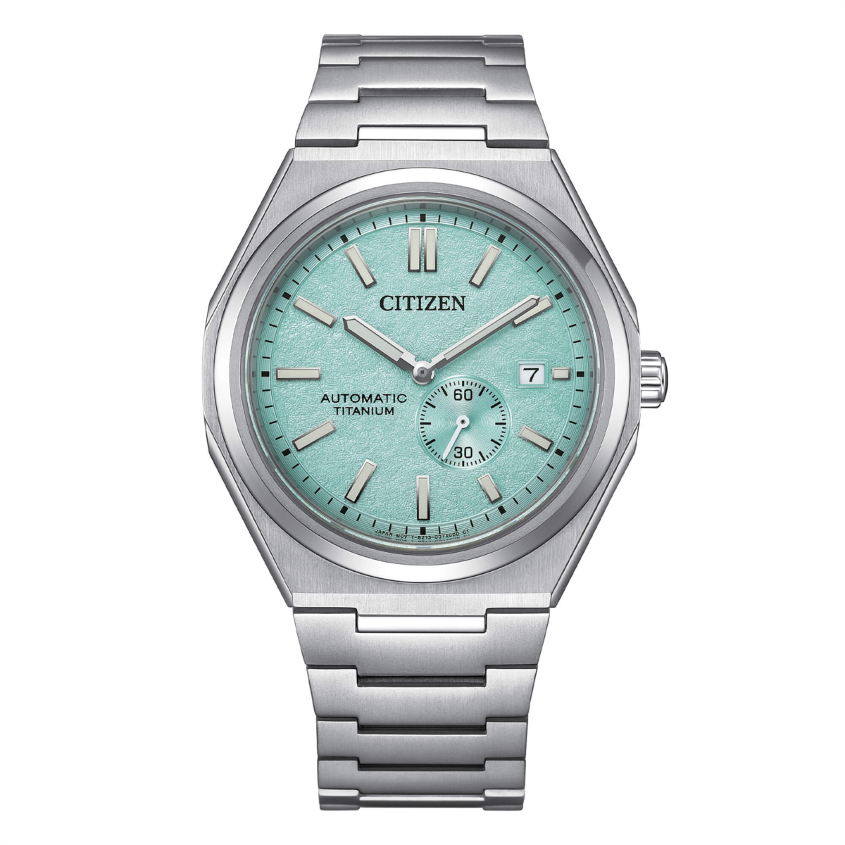 Orologio uomo citizen, NJ0180-80M, collezione tsuyosa, movimento automatico, solo tempo, cassa in titanio 40mm, quadrante turchese, bracciale in titanio, resistenza all'acqua 10atm