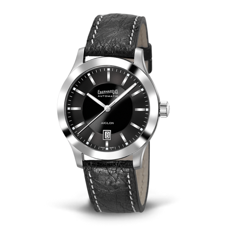 Orologio uomo eberhard, 41030.5/S , collezione aiglon , novità, movimento meccanico automatico, solo tempo, vetro zaffiro antiriflesso, cassa acciaio da 41mm, quadrante nero con parte interna “soleil” e cerchio delle ore “azurée”.
