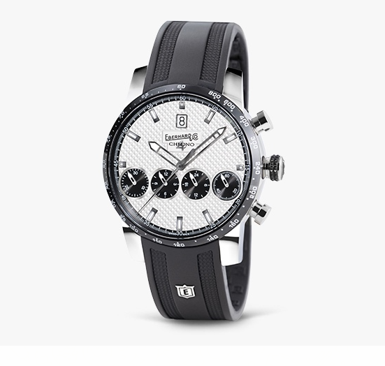 Orologio uomo eberhard, 31073CN CU.5 , Chrono 4 21-42, collezione chrono 4 grande taille, movimento automatico, cronografo, cassa in acciaio 42mm, quadrante bianco con datario, dispositivo eberhard & co.