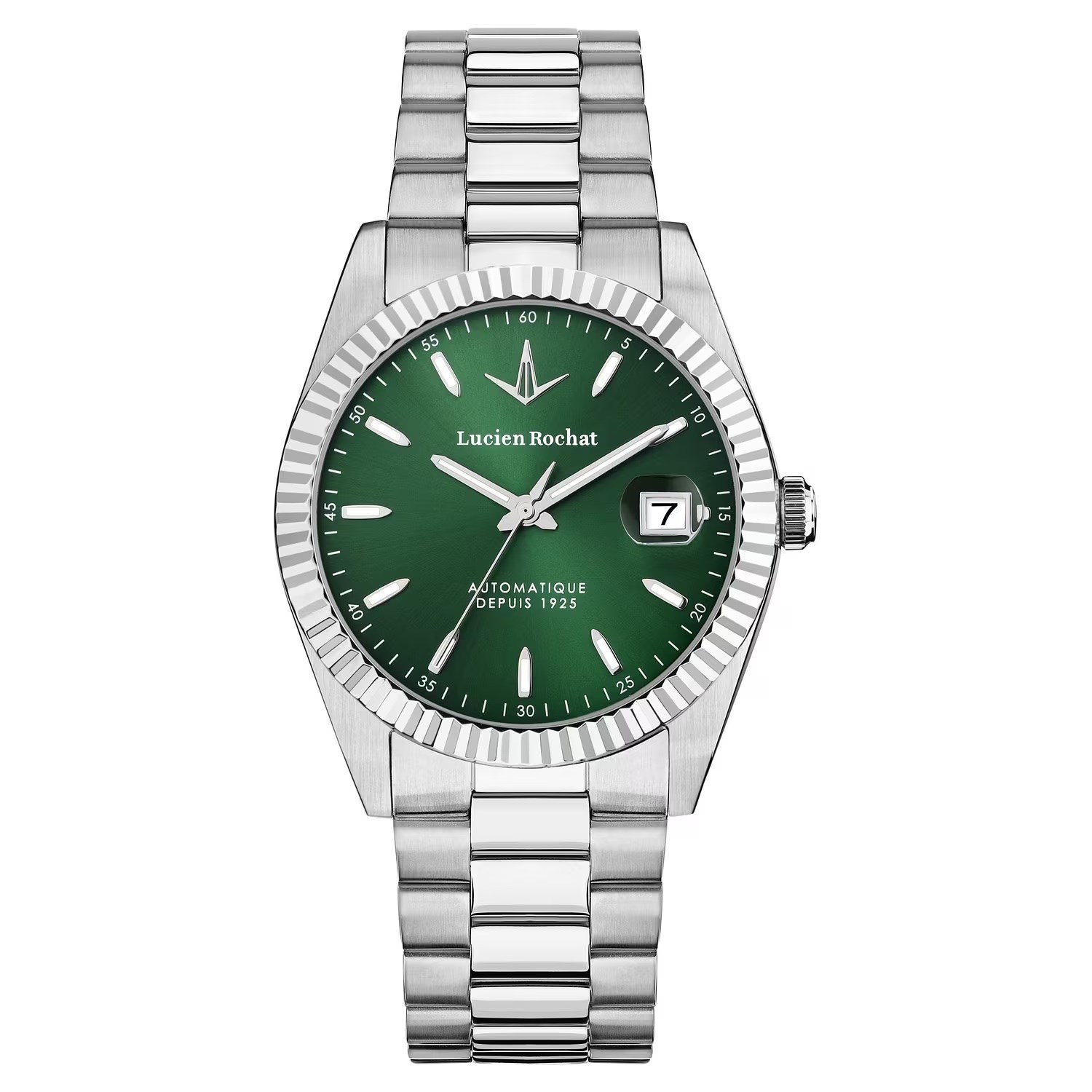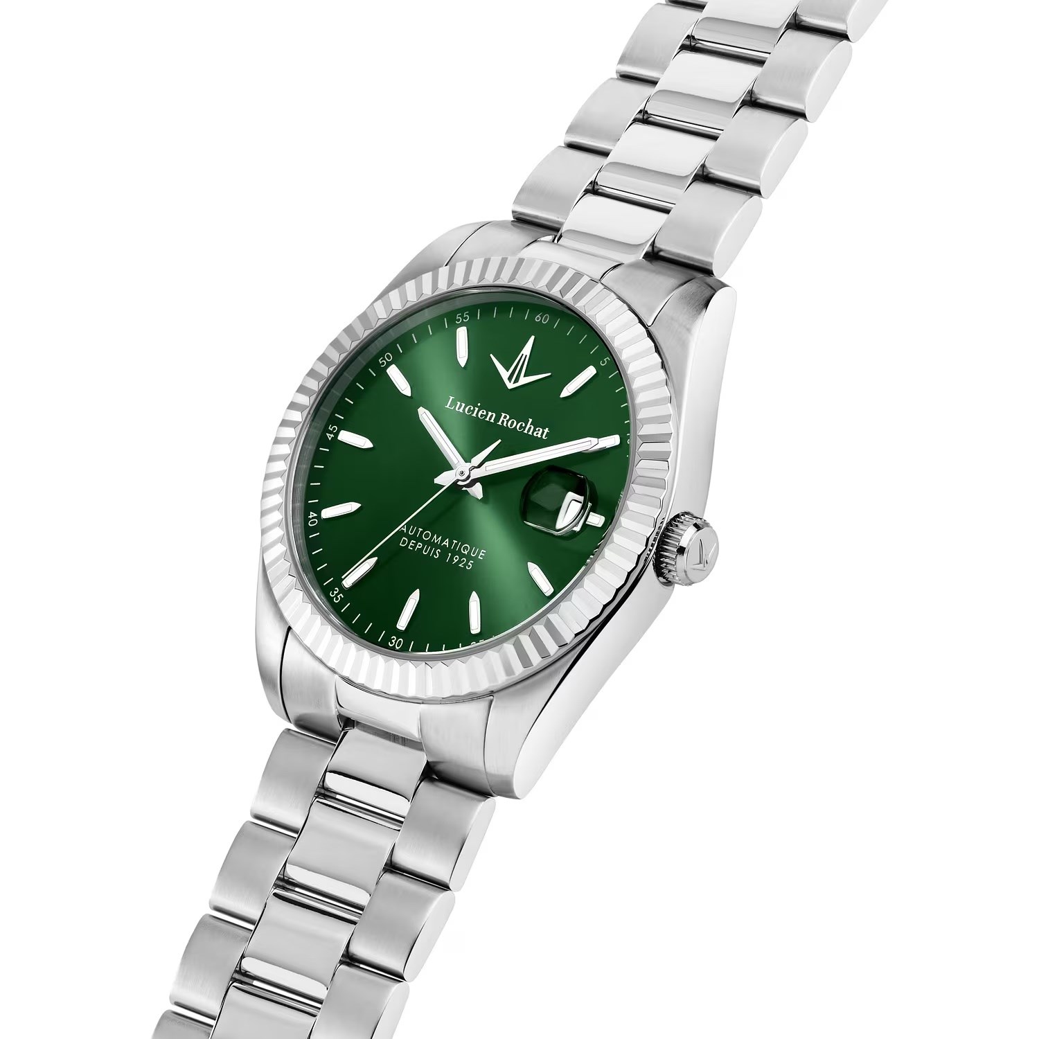 Orologio uomo lucien rochat, R0453124010, collezione bienne, movimento automatico, solo tempo, cassa in acciaio 39mm, quadrante verde con datario a bolla, bracciale in acciaio, resistenza all'acqua 5atm