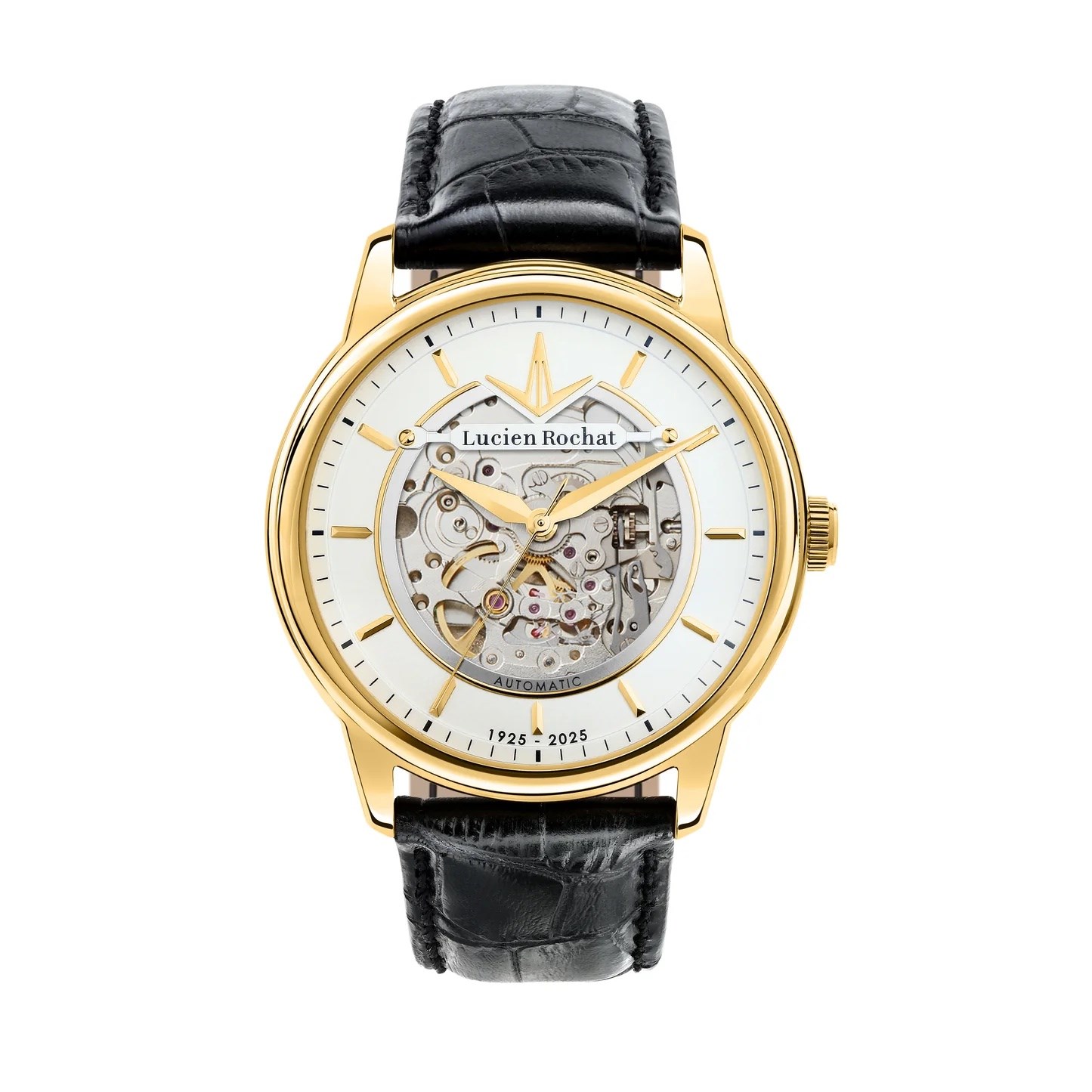 Orologio uomo lucien rochat, R0421116017, collezione iconic, movimento automatico, solo tempo, cassa in acciaio dorato 43mm, quadrante con movimento a vista, Vetro zaffiro.