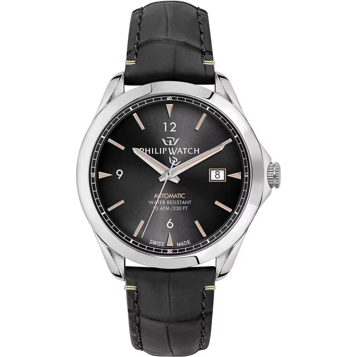 Orologio uomo philip watch, R8221165004, collezione blaze, movimento automatico, solo tempo, cassa in acciaio 41mm, quadrante nero con datario, Vetro zaffiro antiriflesso, Fondello e corona a vite, cinturino in pelle, resistenza all'acqua 10atm