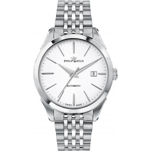 Orologio uomo philip watch, R8223217002, collezione roma, movimento automatico, solo tempo, cassa in acciaio 41mm, quadrante bianco con datario, bracciale in acciaio, resistenza all'acqua 5atm