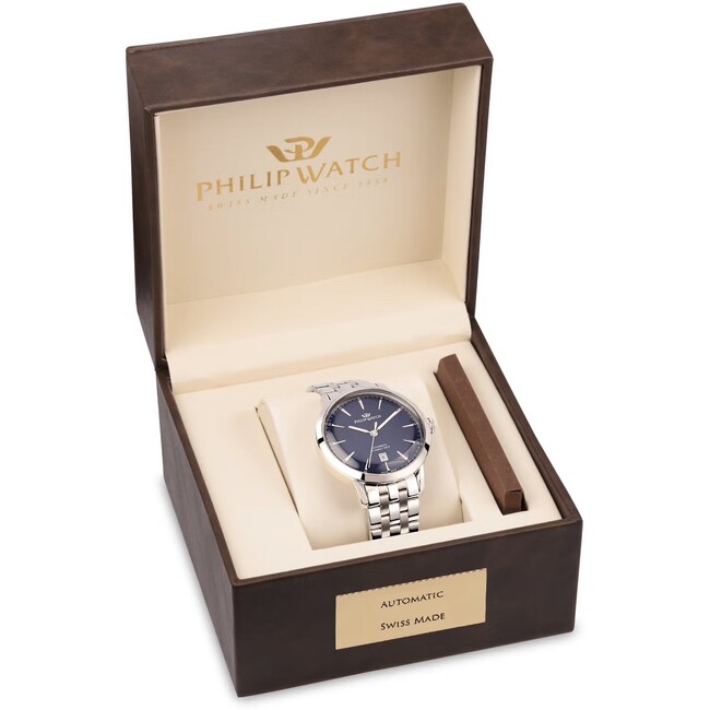 Orologio uomo philip watch, R8223180005, collezione sunray, movimento automatico, solo tempo, cassa in acciaio 41mm, quadrante blu con datario, resistenza all'acqua 5atm