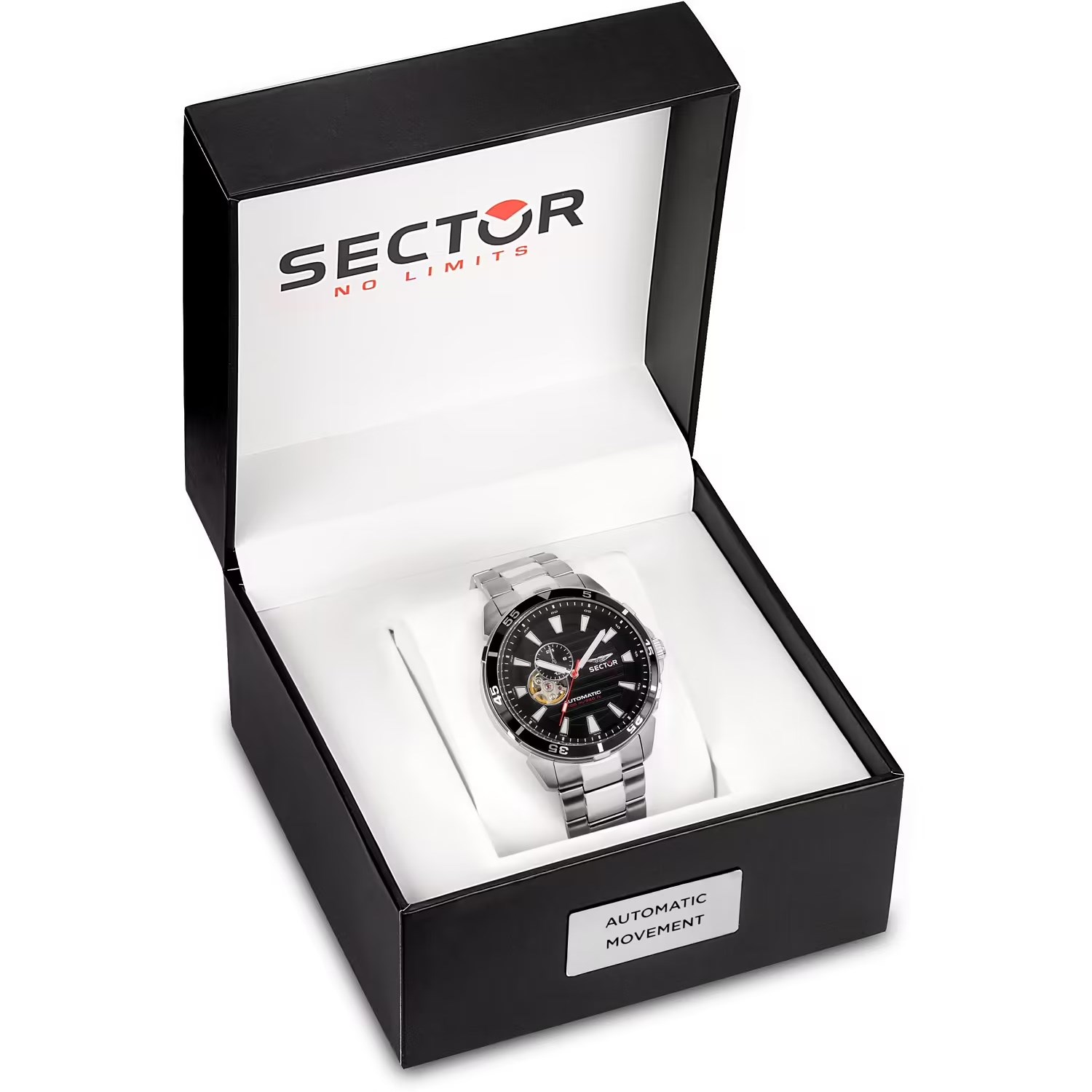 Orologio uomo sector, R3223243001, collezione adv2500, movimento automatico, solo tempo, cassa in acciaio 43mm, quadrante con movimento a vista, bracciale in acciaio, resistenza all'acqua 10atm