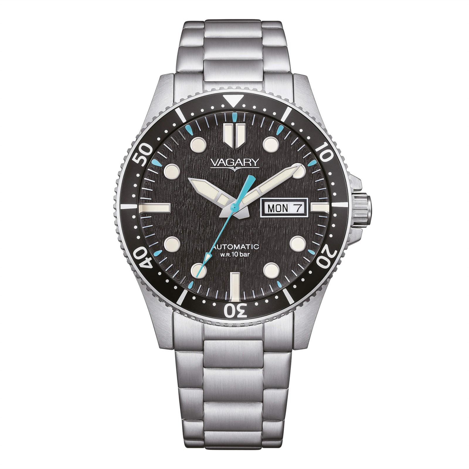 Orologio uomo vagary, IX3-319-57, collezione gear matic 101th, movimento automatico, solo tempo, cassa in acciaio 40mm, quadrante nero con datario, bracciale in acciaio, resistenza all'acqua 10 bar