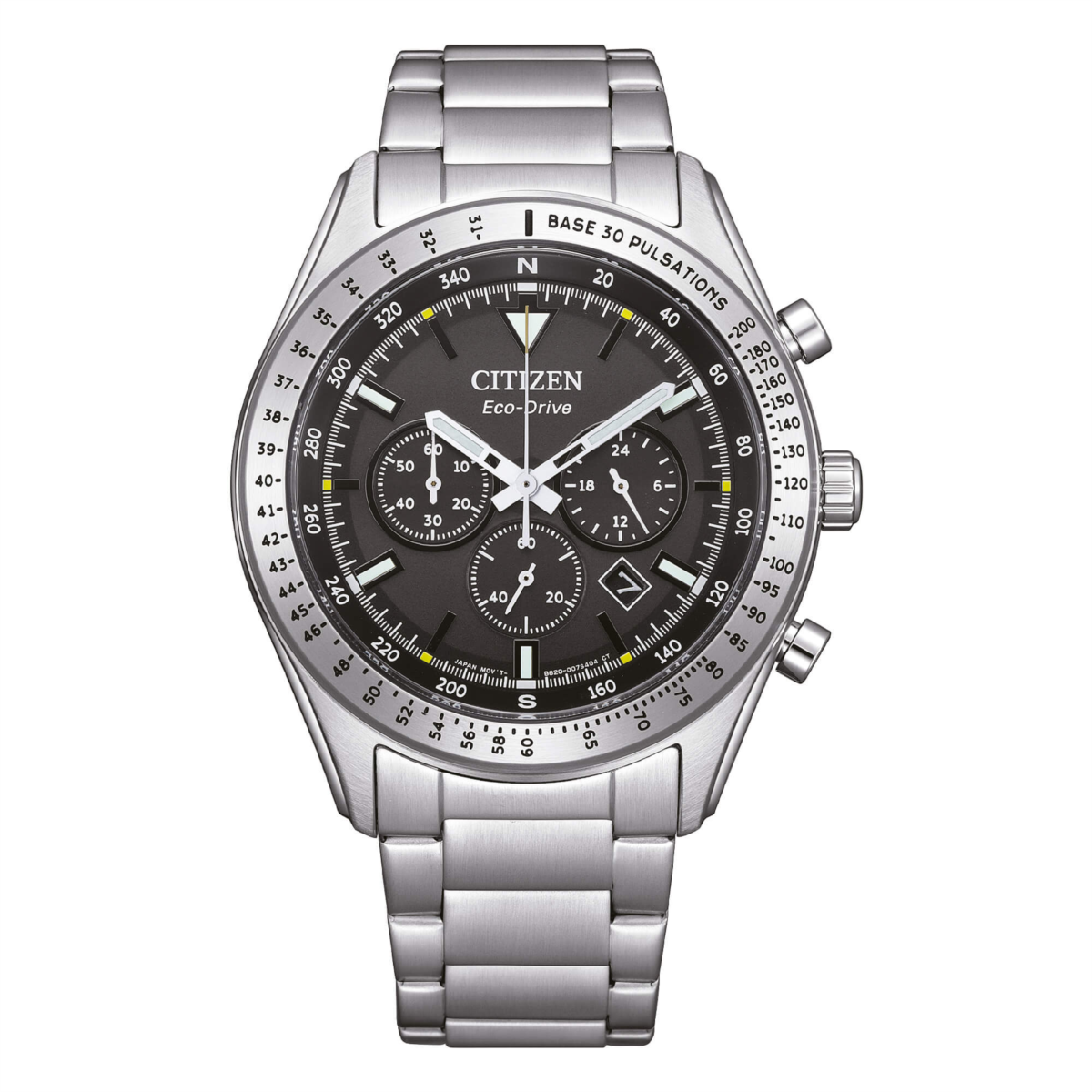 Orologio uomo citizen, CA4600-89E, collezione classic, movimento eco-drive, cronografo, cassa in acciaio 43mm, quadrante nero con datario, bracciale in acciaio, resistenza all'acqua 10atm