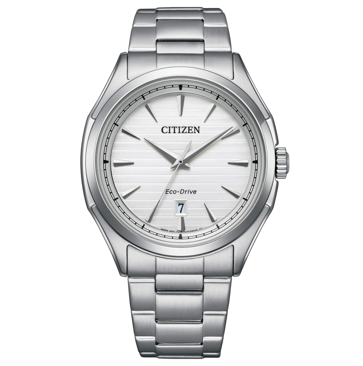 Orologio uomo citizen, AW1750-85A, collezione elegant, movimento eco-drive, solo tempo, cassa in acciaio 41mm, quadrante con datario, fondo serrato a vite, bracciale con chiusura di sicurezza a pulsante, resistenza all'acqua 10atm